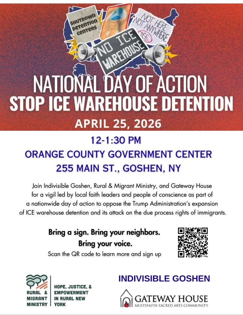 I am honored to be part of the coordinating committee for an ongoing multifaith witness and protest of ICE. Our second vigil is part of Disappeared in America’s Communities Not Cages: National Day of Action to Stop ICE Warehouse Detention.